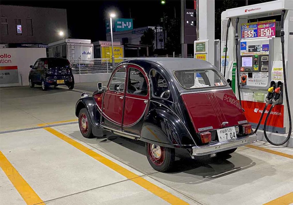 9月なかば、zewsさんが福岡お茶会に参加されるにあたって、2CVのリクエストをいただきました。しかし9月はまだ暑さも厳しいから難しいことをお伝えしつつ、万にひとつを考えてガソリンだけは入れておこうと、敬老の日の夜、約3ヶ月ぶりに少し走らせました。