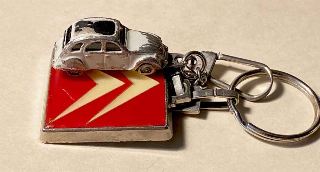 ↑おまけ。新しい鍵のキーホルダーを探していたら、以前ものが抽斗から出てきました。Xm〜C6で長く使っていたものですが、白のボディは擦り切れてほぼ2トーンカラー状態。2CVだからこれを使おうかと思ったものの、気がついたらなくなっていそうで今さら不安になり、ひとまず古い鍵はスペアーとして紐で結わえて一緒に抽斗に戻しました。