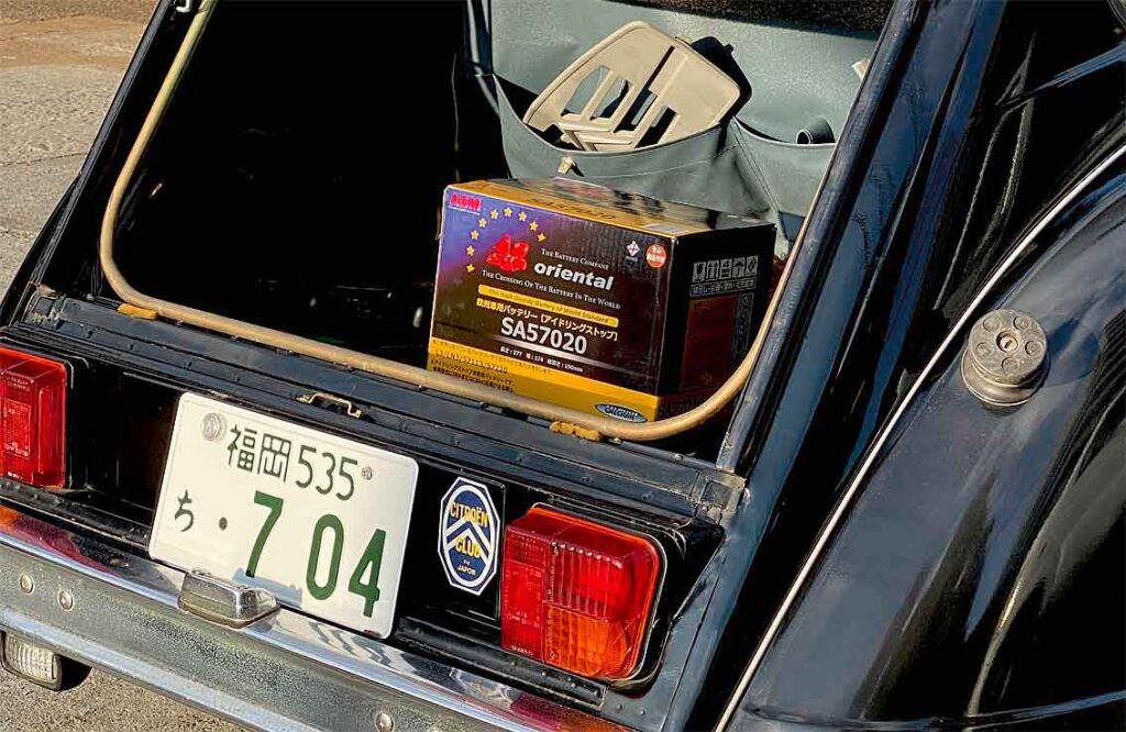 このとき、あいにくゴルフが手許になかったけれど2CVは問題なくエンジンが掛かったから、これで行くしかないと覚悟を決めて片道30分ほどの倉庫店まで行き、新品バッテリーをトランクに乗せて無事に戻ってくることができました。