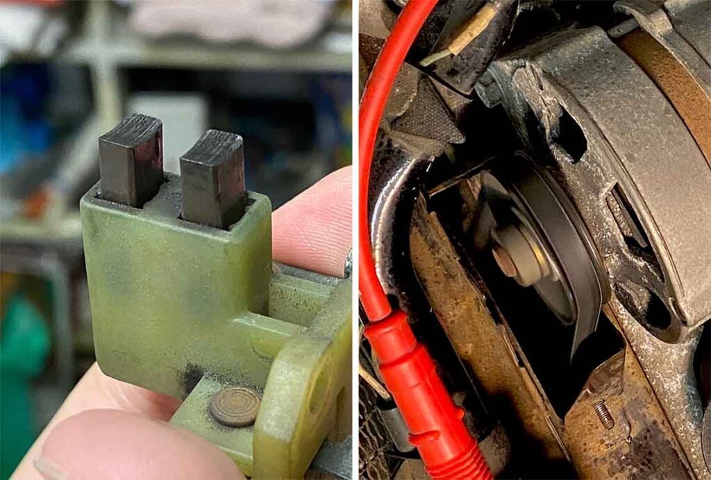 で、オルタネーターのブラシの摩耗チェックをしてみようということになり、中を取り出してみたところこれも特に問題はないだろうとのこと。