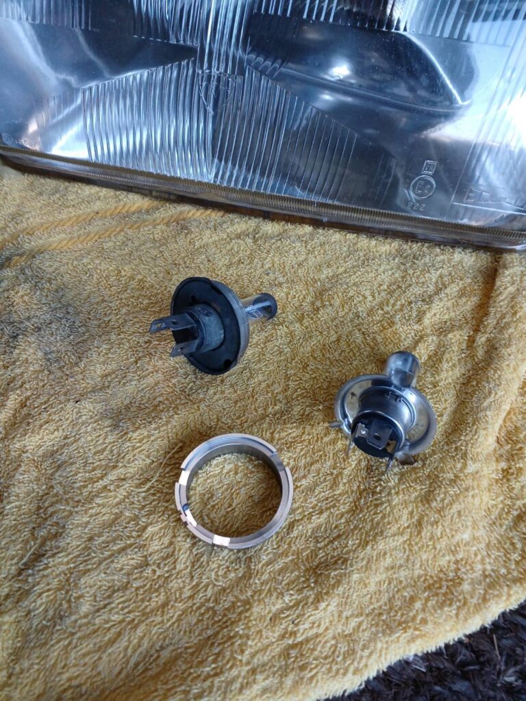 H4eバルブは選択肢が少ないので、台座をつかってH4の高効率ハロゲンバルブに変換しました。これでも光量不足の場合はLEDバルブも搭載可能になりました。