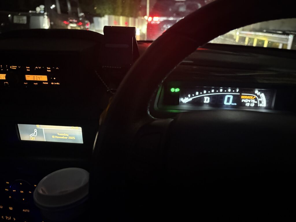 10月後半になるとようやく季節到来なのですが、夜はヘッドライトを点灯するせいかメーター内の電圧計がやけに左(マイナス側)に傾いているのが少し気にかかりました。