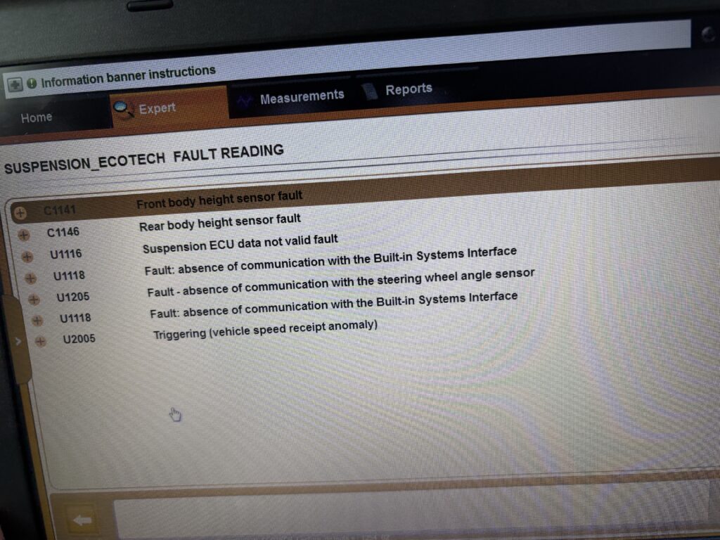 先日箱根の温泉に出かけた帰り、駐車場を出たところで警告灯が点灯しました。なんでもサスペンションのエラーとかで90キロ以下で走れよ!そして修理に出せと。。普通に走れてますので速度を落として帰宅しました。ハイドロの制御が出来ておらずユラユラが大きく感じました。また当然ですがエンジン停止でも車高は下がらず、手動スイッチでも動く事もありません。前回車検でお世話になった工場に電話をしたところ、現在多忙にて後ほど診てもらう事に。その前に何が故障しているか?テスターで確認してくださいとのお話でした。ディーラーに連絡するもこれまた入庫の空きが無く27日なら。。との回答。そんな中で以前c6にお乗りのS様より有難い助け舟がありまして、端末に繋いで貰いエラーを確認しました。おそらくフロントのハイトセンサーでは無いかと、、あくまでも画面での確認ですので確定ではありませんが、ハイトセンサーなら嬉しいのですが。既にc6を降りられているのに、わざわざの連絡と訪問に快く対応くださり改めて感謝申し上げます。さてこれから修理の段取りですが、吉と出るか凶とでるか?
