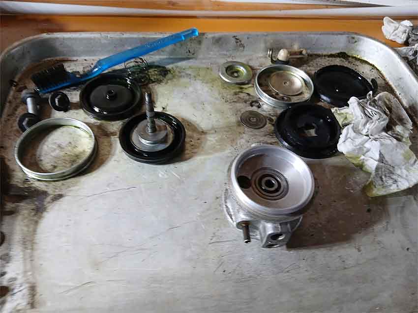 バラバラにして、ダイヤフラム、カバーを全て交換します。